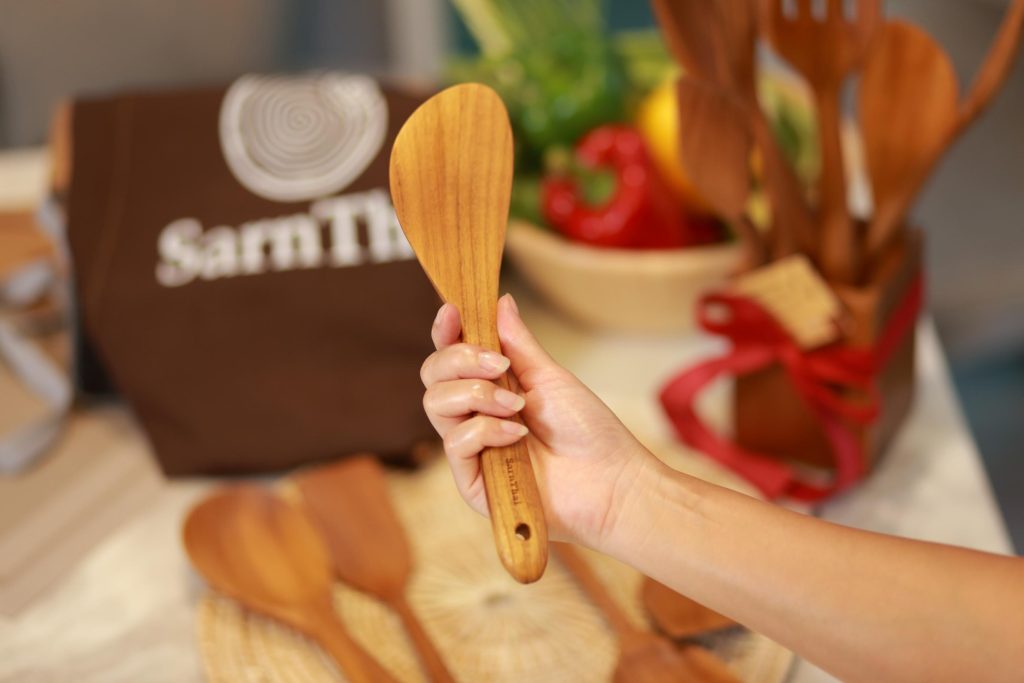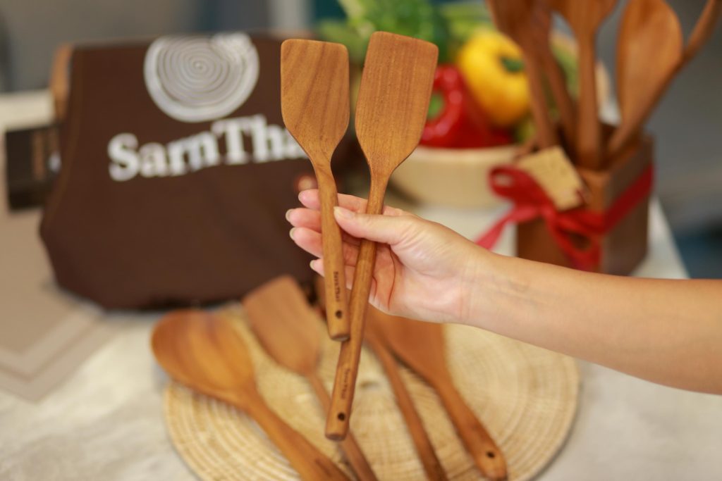 That belief inspired me to design a collection of golden teak kitchen tools—spatulas, ladles, spoons, and essential utensils I personally use. Each piece brings me joy the moment I hold it, giving me confidence that the food I cook for my loved ones is safe, natural, and free from harmful chemicals. From this simple feeling, SarnThai was born— a small family-owned brand created with a mission to support our local community.